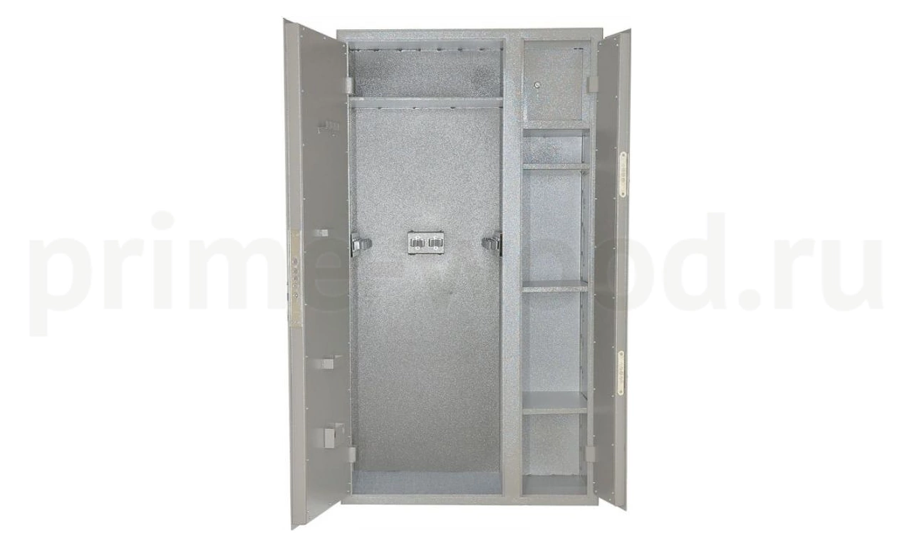 Отделение под оружие запирается 8-ми сувальдным тяговым замком 4-го класса ГОСТ 5089-2011 и ключевым 8-ми сувальдным замком 2-го класса ГОСТ 5089-2011. Отделение под боеприпасы запирается на 2 ключевых 8-ми сувальдных замка 2-го класса ГОСТ 5089-2011.